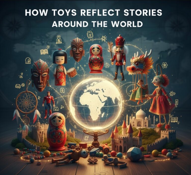 Toys are so much fun! But they’re not just for playing—they tell stories too! Soft stuffed animals, Pokémon cards, and building sets like spaceships share stories from different places in the world. Each toy shows us something special about people, places, and ideas. Let’s look at how toys tell these stories in a super easy and fun way!